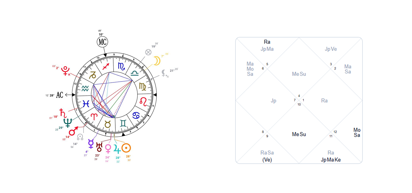 • Главная карта — раши (раши, зодиакальный знак Асцендента). Часто смотрят множество дополнительных карт (навамша D9 и др.) для глубокой трактовки.